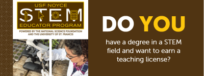The College of Education at The University of St. Francis has been educating teachers since 1925 and remains committed to providing engaging and high-quality programs designed to meet the challenges that face today’s educators.