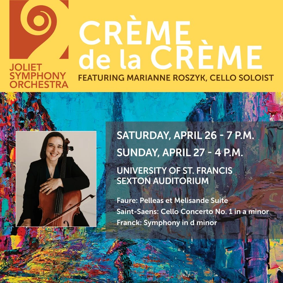 Joining the JSO for Camille SAINT-SAENS’ Cello Concerto is local cellist Marianne Roszyk. Currently, she is a member of the Elmhurst Symphony Orchestra and the Fox Valley Orchestra, and had the honor of participating as an associate member of the Civic Orchestra of Chicago during its 2012 – 2013 season. She earned the Bachelor of Science degree in Arts Administration with an emphasis in Music as well as a Master’s degree at Butler University, where she studied cello with Dr. William Grubb. Prior to attending Butler University, Marianne studied cello with Alexandru Dumitrache, Emily Mantell, and Stan Smith. She has attended masterclasses provided by such esteemed cellists as Carter Enyeart of the University of Missouri at Kansas City, Katinka Kleijn of the Chicago Symphony Orchestra, Myles Jordan of the DaPonte String Quartet, Mark Johnson of the Vermeer Quartet, and Simon Fryer of the Canadian Conservatory.