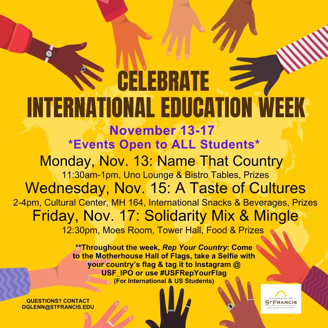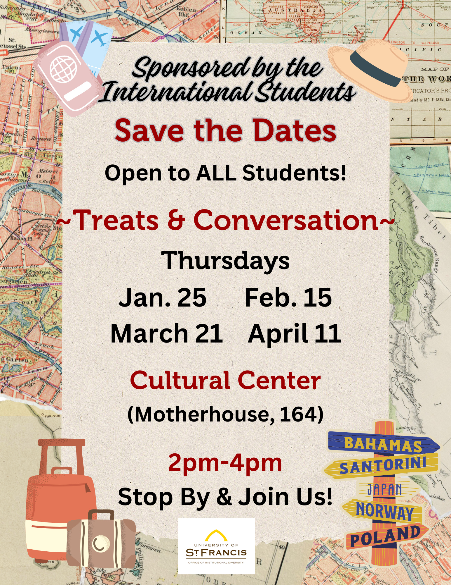 International Student Services (ISS) exists to support international students who are studying at the University of St. Francis. We are guided by the Franciscan values of respect, integrity, service, and compassion and work to promote an environment in which students, faculty, and staff can become aware of and involved with global people and perspectives that shape our world. We welcome you, international students!