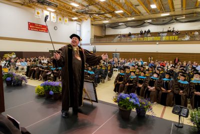 From the start of his presidency, “Arvid” (which he humbly asked the entire USF community to call him) was a believer in servant leadership. His inauguration theme, “Called to Lead, Called to Serve,” was an indication of his commitment to serving his new Franciscan university with both strength and humility. For many years, his email signature included a quote by Chinese philosopher Lao Tzu: “A leader is best when people barely know he exists. When his work is done, his aim fulfilled, they will say, ‘We did this ourselves.’”
