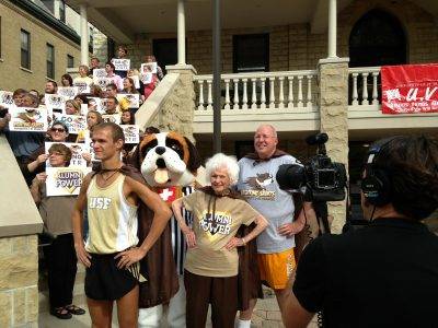 Arvid and his wife, Anne, became active members of the university community, attending campus events, sports matches, and taking a genuine interest in every Saint. Arvid made a regular practice of having lunch in the Terrace Café with students and employees and enthusiastically participated in the “USF Power” video campaign, where he engaged in a comical arm-wrestling match against USF’s oldest alumna and raced against a USF cross country star on the Quad. He and Anne quickly became two of the Fighting Saints’ biggest fans, following athletics closely. In 2015, Arvid was awarded with USF Athletics’ “Supporting Saint Award,” presented to the top university employee or community member who makes a positive impact on the daily lives of USF student-athletes (nominated by the athletes). The same award was presented to Anne in 2025.
